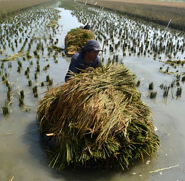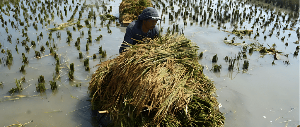 Banjir merendam dan merusak tanaman Padi yang hampir panen milik masyarakat (ekonomi.republika.co.id)